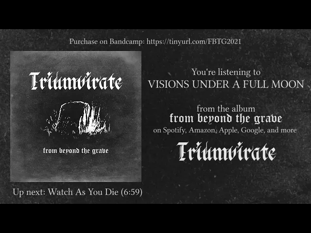 Triumvirate From Beyond the Grave Çevrimiçi dinle Triumvirate - From Beyond the Grave Facebook WhatsApp Viber Telegram Triumvirate - From Beyond the Grave yayından duyulabilir: Metal Tavern Radio 24/7 Rock and Metal Music Sanatçının diğer parçaları Triumvirate: Triumvirate - God is Dead or Doesn't Care Triumvirate - Visions Under a Full Moon Triumvirate - Watch As You Die Triumvirate - Spikes Driven Deep Triumvirate - Department of Offense